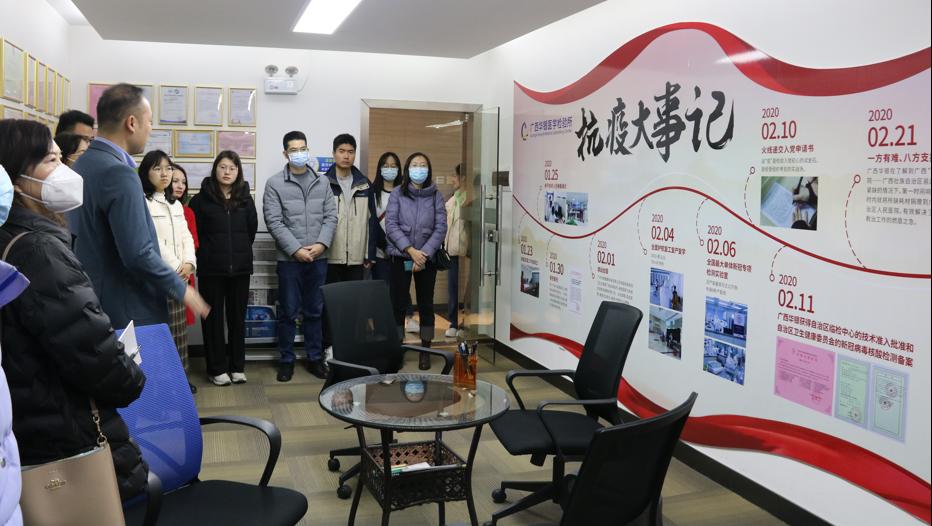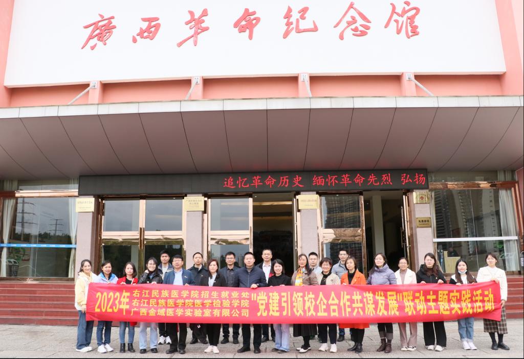 24日,医学检验公司党委、公司人才招聘处党支部、现代产业公司与广西金域医学实验室有限公司党支部党员代表前往广西革命纪念馆开展红色教育,大家感悟初心,汲取力量在学习贯彻落实党的二十大精神的开局之年团结奋发再创佳绩。随后大家前往广西金域医学实验室有限公司开展党的二十大精神学习、访企拓岗、参观考察、座谈交流。在大家参观考察完实验室后,医学检验公司党委组织员陈莎同志为大家上了《正确理解和大力推进中国式现代化》的专题党课,最后大家围绕访企拓岗、党建共建、本科生和公司产品、校企深度合作等进行了沟通交流,助力了日后校企合作推进毕业生就业、检验人才培养、产学研合作等工作。