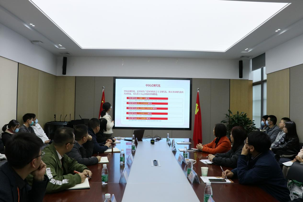 会上,太阳成集团tyc122cc员工第一支部书记陈莎带领全体党员深入学习党的二十大精神,详细讲解了作为党员应该如何正确理解和推进中国式现代化。