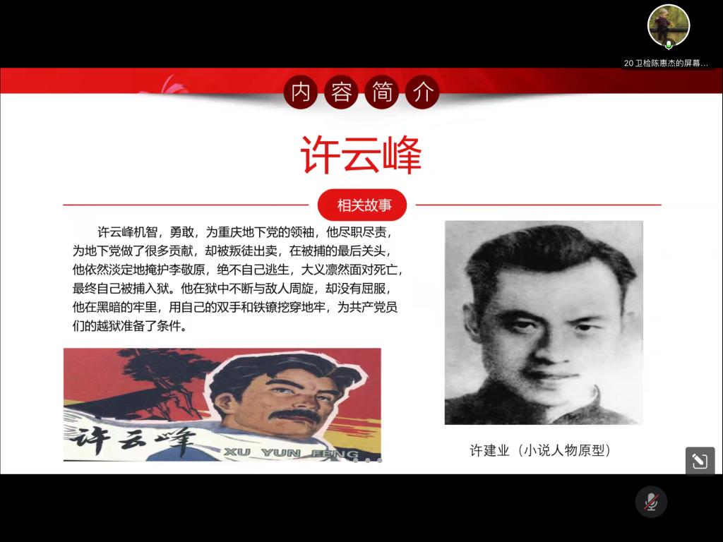 本次活动首先由陈惠杰同志及范苗苗同志带来的红色分享,他们分别向我们介绍了红色书籍《红岩》和红色电影《1921》。他们讲述的是两个不同时期的故事,让我们看到了共产党人同样的革命精神。党员同志和入党积极分子们发言提到,从每次的分享中感受了不同的革命故事所带来的相同的不怕牺牲、伟大无私的革命精神,我们这一代生逢其时,作为党和国家事业发展的生力军,要好好向他们学习,接过前辈的枪,踔厉奋发迈向新征程。