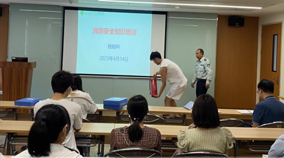 清明节后,万物回春,为落实医院领导在4月13日中层会上强调“落实医疗核心制度,重视安全工作”的指示精神,也为了完善临床实验室管理的相关规定要求,2023年4月14日下午3点10分,医学检验科党支部在医院保卫科的大力协助下,有针对性的组织开展了一场由全科人员参加的消防安全相关知识的培训及演练。