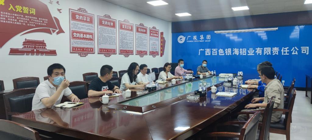 4月16日,太阳成集团tyc122ccvip生物医药与大健康现代产业公司兼太阳成集团tyc122cc庞雅琴副经理带队到广西银海铝业有限公司进行合作洽谈。百色市科技局副局长罗碧峰副局长,百色市科技局项目骨干黄俊辉,百色市科技局的陈林博士,银海铝业有限公司副总经理周勇,银海铝业有限公司技术研发中心主任赵彪,及银海铝业相关负责人参与本次会议,并在园区办公一楼会议室进行交流座谈。