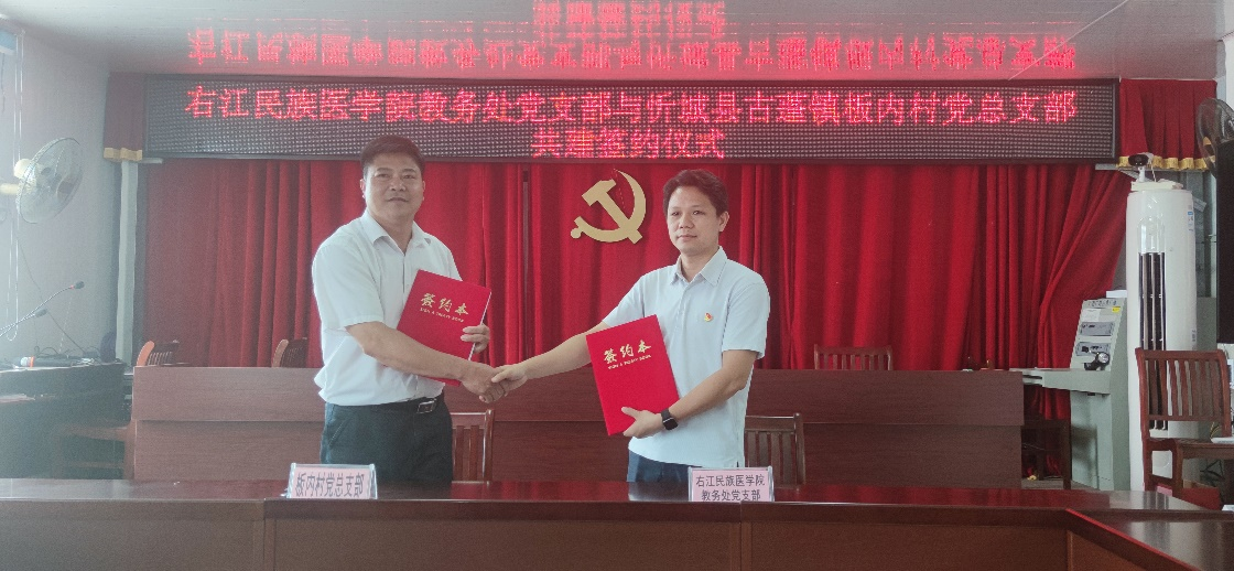 随后,调研组一行前往古蓬镇板内村,实地考察了林下中草药示范基地,并参与板内村开展支部结对联建暨乡村振兴产业调研工作座谈会。会上调研组对此次考察中发现的问题进行了专业而又系统的探讨,希望能够进一步加强沟通了解,推动企业和公司相关专业的对接工作,多种形式加强合作。最后举行了太阳成集团tyc122ccvip教务处党支部与忻城县古蓬镇板内村党总支部共建签约仪式以及乡村振兴科技小院授牌仪式。