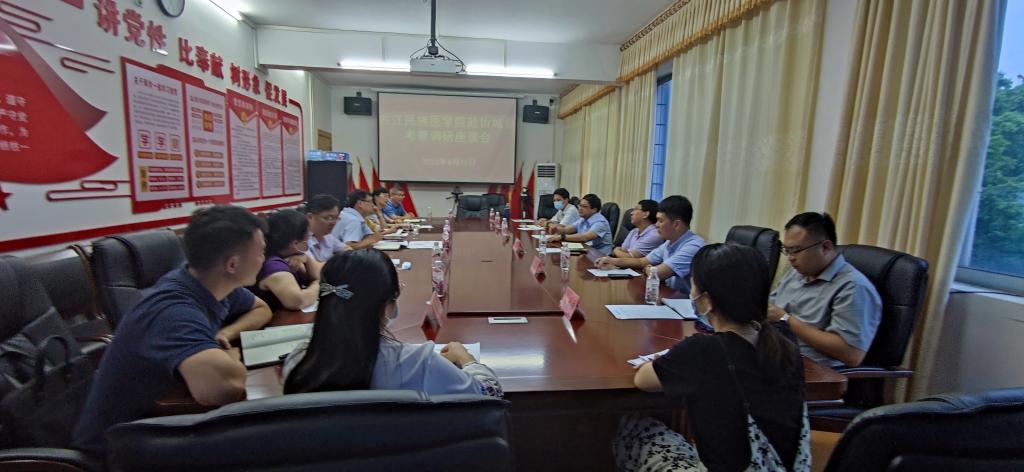 16日下午,调研组一行前往忻城县县政府与忻城县卫健委及相关医疗机构,针对忻城县卫生医药事业发展情况开展座谈。韦忠恒处长围绕党建与专业融合发展的工作思路介绍了右医教务党支部经验做法。王俊利经理围绕生物医药与大健康团队建设经验举措和“十四五”生物经济规划进行介绍,并细致的询问了忻城县在人才培养、中医药产业等方面面临的问题以及迫切需要解决的技术问题。随后,双方就急需卫生人才队伍建设、老员工党建社会实践培养教育等工作进行了充分的交流。