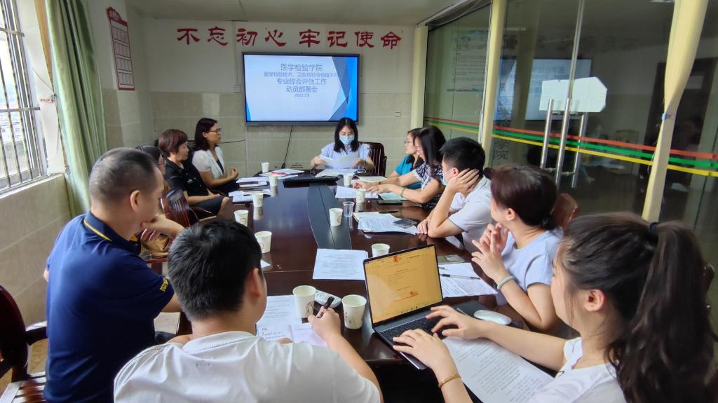 2022年7月8日下午,太阳成集团tyc122cc7栋11楼会议室召开医学检验技术、卫生检验与检疫本科专业综合评估工作动员部署会,参会人员有庞雅琴副经理、何彦妮副书记、各职能科室负责人、各教研室主任和秘书等,会议由庞雅琴副经理主持。