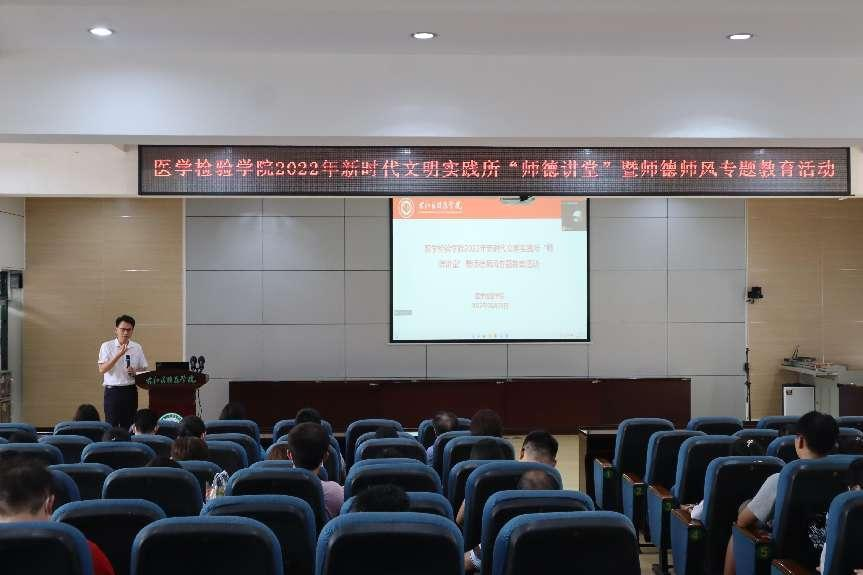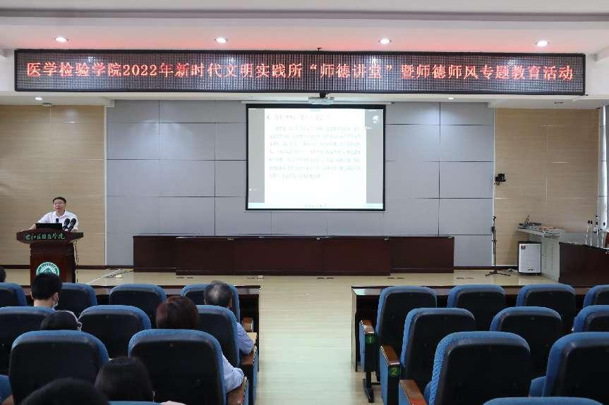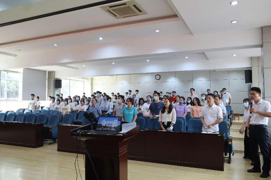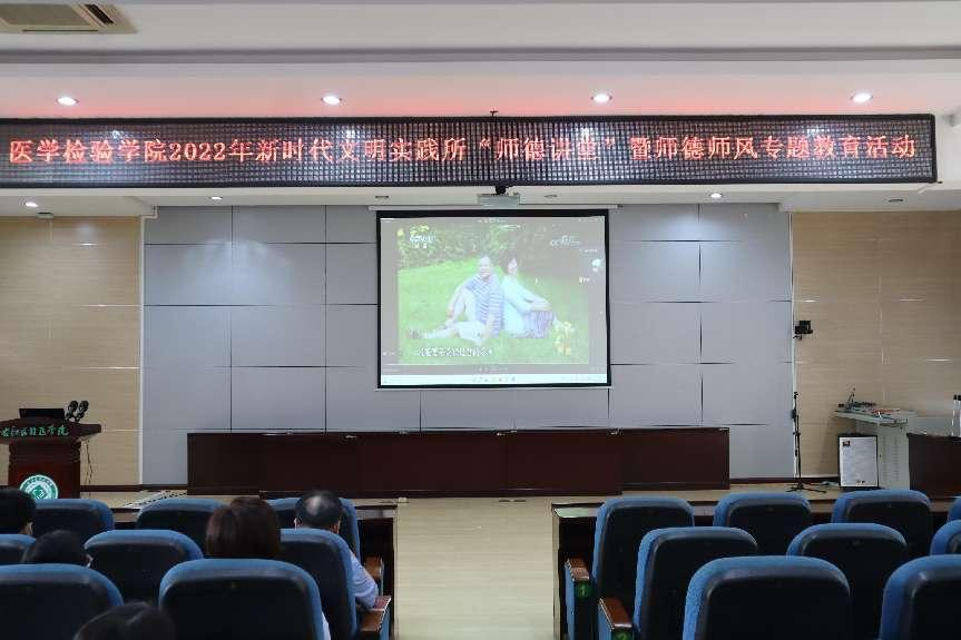 6月29日下午,医学检验公司在5栋101学术报告厅开展师德大讲堂暨清廉公司建设活动。公司党委书记\经理王俊利、副书记何彦妮、副经理庞雅琴等公司领导、全体教师及员工代表参加了本次活动。活动按照“唱一首歌曲,诵一段经典,看一部短片,听一堂党课,讲一个故事,作一番点评”的“六个一”流程,以“我听、我看、我讲、我议、我选、我行”的“六个我”的讲堂形式来进行。