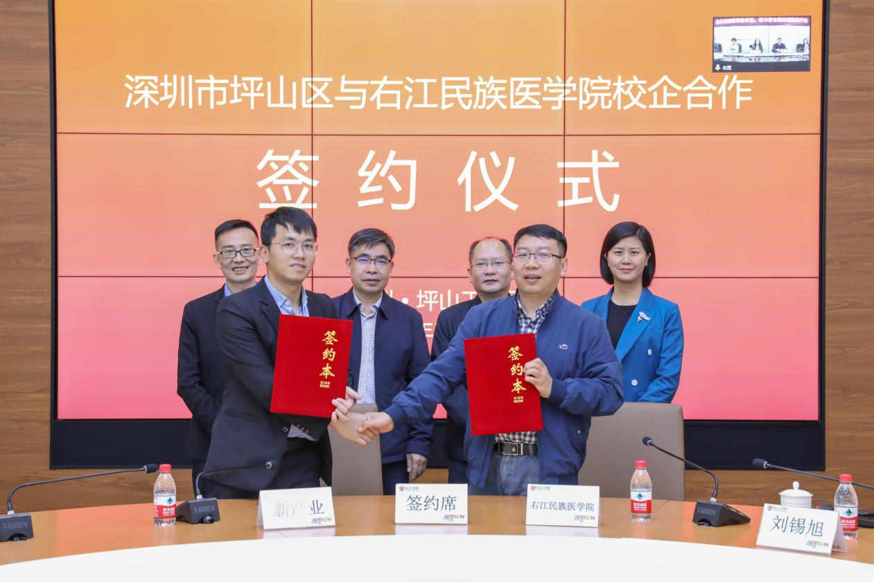 14日下午,王俊利经理一行3人在深圳市坪山区工匠园与坪山区人力资源局的领导、各企业代表召开校企合作交流座谈会,双方就对口人才培养,多元化校企合作模式进行了探讨,在实习实践基地和联合实验室的创建、科研项目的开发等方面达成了初步的合作意向。15日-16日,一行3人先后赴深圳市坪山区妇幼保健院、深圳市新产业生物医学工程股份有限公司、深圳唯公科技有限公司、亚能生物技术(深圳)有限公司和深圳市优圣康生物科技有限公司进行访谈,双方就产业公司员工的实习实践、科研合作、校企联合培养研究生、“双师型”导师的联合培养等方面展开了深入的交流。会后,王俊利经理与亚能生物技术(深圳)有限公司、深圳市优圣康生物科技有限公司的领导分别举行实习实践基地和产学研联合实验室的揭牌仪式。