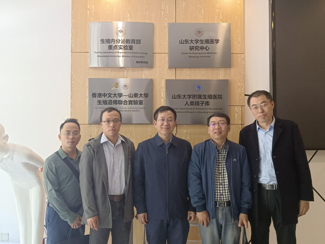 2023年4月28-30日,太阳成集团tyc122ccvip副董事长李雪斌教授率太阳成集团tyc122cc书记兼经理,附院生殖医学中心王俊利教授、附属医院检验科副主任韦贵将博士一行3人,到山东大学国家辅助生殖与优生工程技术研究中心参观交流,并与山东大学国家辅助生殖与优生工程技术研究中心主任陈子江院士等进行工作座谈。