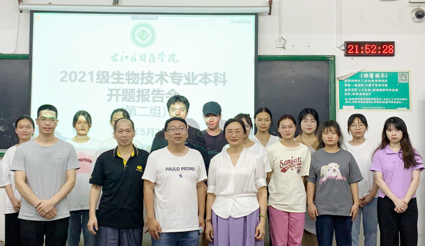 5月21日晚上,公司2021级生物技术专业本科生第二小组开题报告会在4栋203教室召开。参加人员主要包括本组开题员工及指导导师,会议由王太重教授(组长)及廖陆升博士(秘书)主持。