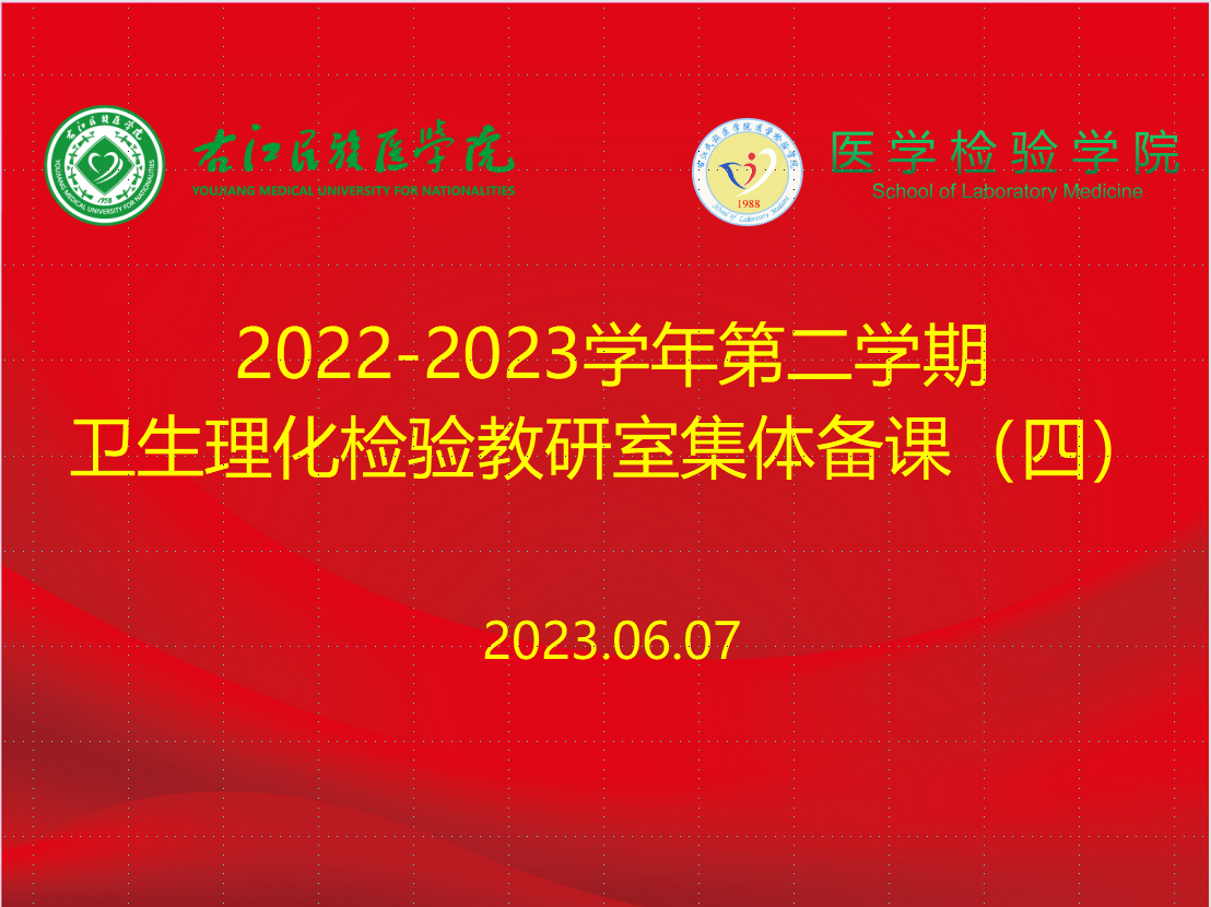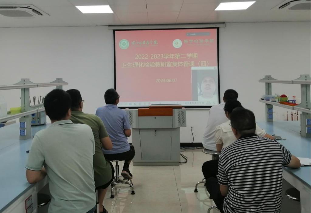 2023年6月7日上午,太阳成集团tyc122cc卫生理化检验教研室开展了2022-2023年第二学期第四次集体备课活动。本次活动是在全党大兴调查研究和全校开展“教师教学能力提升月”活动背景下进行。活动由教研室主任宗子傲博士主持,邀请到了2019级卫生检验与检疫专业员工代表陈迪、贺雨和用人单位代表江西德普环境检测有限公司副总经理秦鵾出席本次活动。
