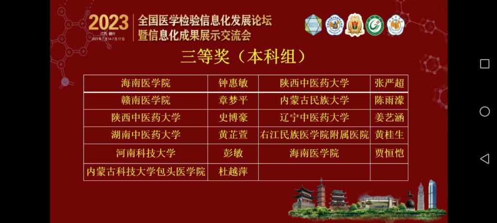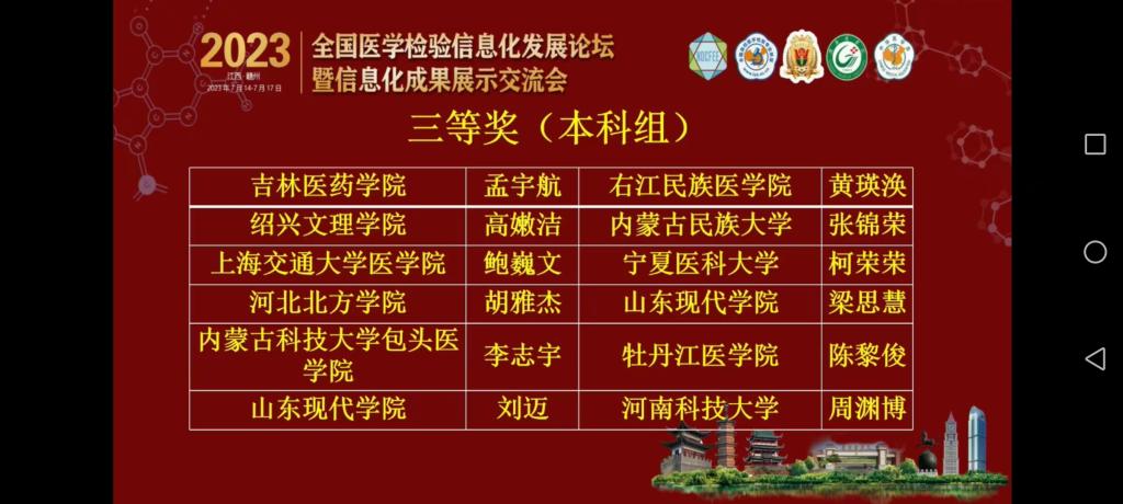 由高等公司国家级实验教学示范中心联席会、全国高等医学教育医学检验专业校际协作会、全国高等公司医学检验技术专业联盟、南方医科大学、赣南医公司主办,中华医学会检验分会协办的2023年全国医学检验信息化发展论坛暨信息化成果展示交流会,于7月14日至17日在江西赣州举办。会议期间同步进行员工形态学、虚拟仿真临床实验诊断、教师金微课等大赛交流活动。公司师生在形态学、虚拟仿真临床实验诊断、教师金微课等大赛中以扎实的功底和专业的素养荣获佳绩。