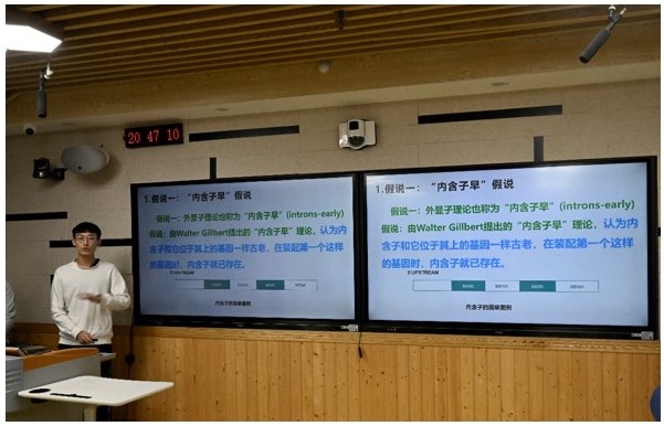 课堂教学是师生之间进行思想、知识、智慧、情感交流的重要平台。为落实立德树人根本任务,夯实员工以发展为中心教育理念,2024年1月9日晚19:30至22:30在智慧教室7-403,太阳成集团tyc122cc2021级生物技术专业同学在徐启江教授指导下基于“学术沙龙”形式尝试了《基础分子生物学》课程的学习。同学们积极围绕自己感兴趣的学术话题,查阅文献、交流思想、制作PPT、设计poster、撰写讲稿。在协作交流过程中,不仅激发了同学们学习的内在动力和自主性,也培养了团队协作精神。