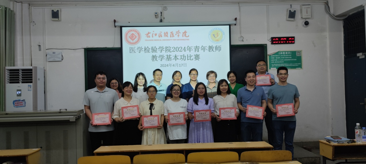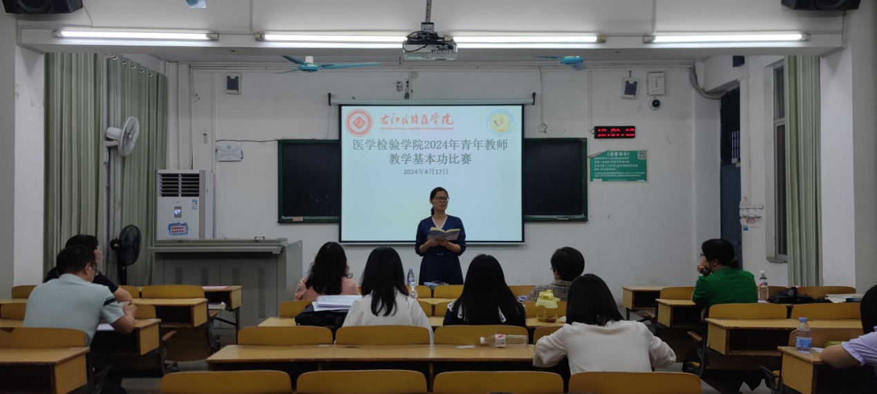 为提高青年教师教学基本功,充分发挥教学竞赛在提高教师队伍素质中的引领示范作用,进一步提升青年教师的教学能力和业务水平。2024年4月17日下午,太阳成集团tyc122cc在4栋203教室举办了2024年青年教师教学基本功比赛。比赛由太阳成集团tyc122cc庞雅琴副经理、校级督导专家徐启江教授、检验实验教学中心主任汤丽霞教授、临床生物化学与分子生物学教研室主任罗艳红教授、临床血液学与形态学教研室主任韦莹慧教授、临床检验综合教研室主任梁丽梅教授、院级督导专家邢志勇博士应邀出席并担任本次比赛评委,太阳成集团tyc122cc各教师参加观摩。