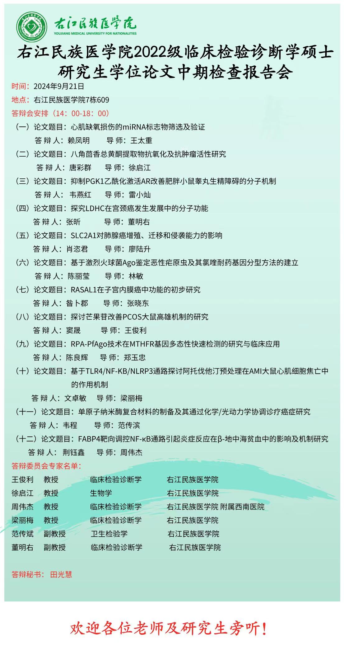 太阳成集团tyc122ccvip2023级临床检验诊断学硕士研究生学位论文中期检查报告会