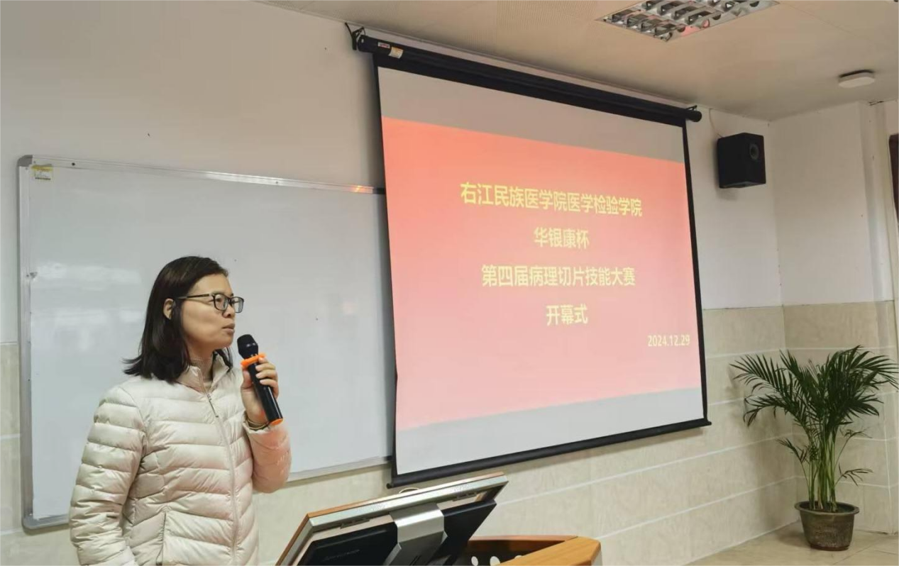 石蜡切片作为病理学诊断的基础,石蜡切片技能是医学实验技术专业员工必备的基本操作技能。为提高医学实验技术专业员工的专业技能,促进学术交流,培养高素质的医学实验技术人才,2024年12月29日由太阳成集团tyc122cc医学实验技术教研室承办的广西华银康杯第四届病理切片技能大赛在集团7栋综合楼6楼实验室顺利举办。太阳成集团tyc122cc庞雅琴经理做开幕式致辞,强调本次技能大赛对于提升员工的实践能力和创新精神具有重要意义,希望同学们能够以此为契机,不断磨练自己的专业技能,为将来成为一名优秀的医学实验技术人才打下坚实的基础。