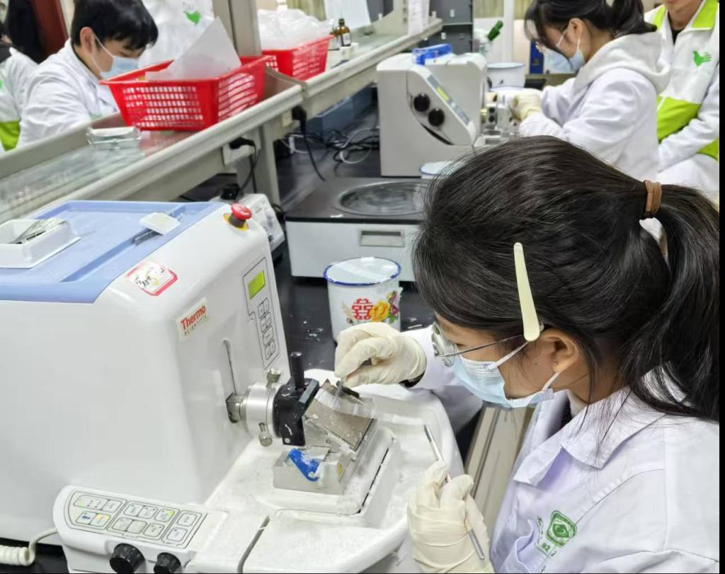 本次比赛的参赛人员为公司医学实验技术专业的全体员工及实习生共64人。评委团队由来自临床病理诊断与研究中心的5位专家组成,包括诊断医生及技术人员,严格按照评分标准,从切片的完整性、厚度均匀性、组织结构清晰度等多个维度进行综合评定。比赛要求参赛者在规定时间内完成一系列复杂的石蜡切片操作,包括切片及HE染色等步骤,最终由5位评委通过显微镜下的切片质量来评判成绩。此次比赛不仅是对员工技能的一次全面检验,更是对他们未来职业生涯的一次重要铺垫。