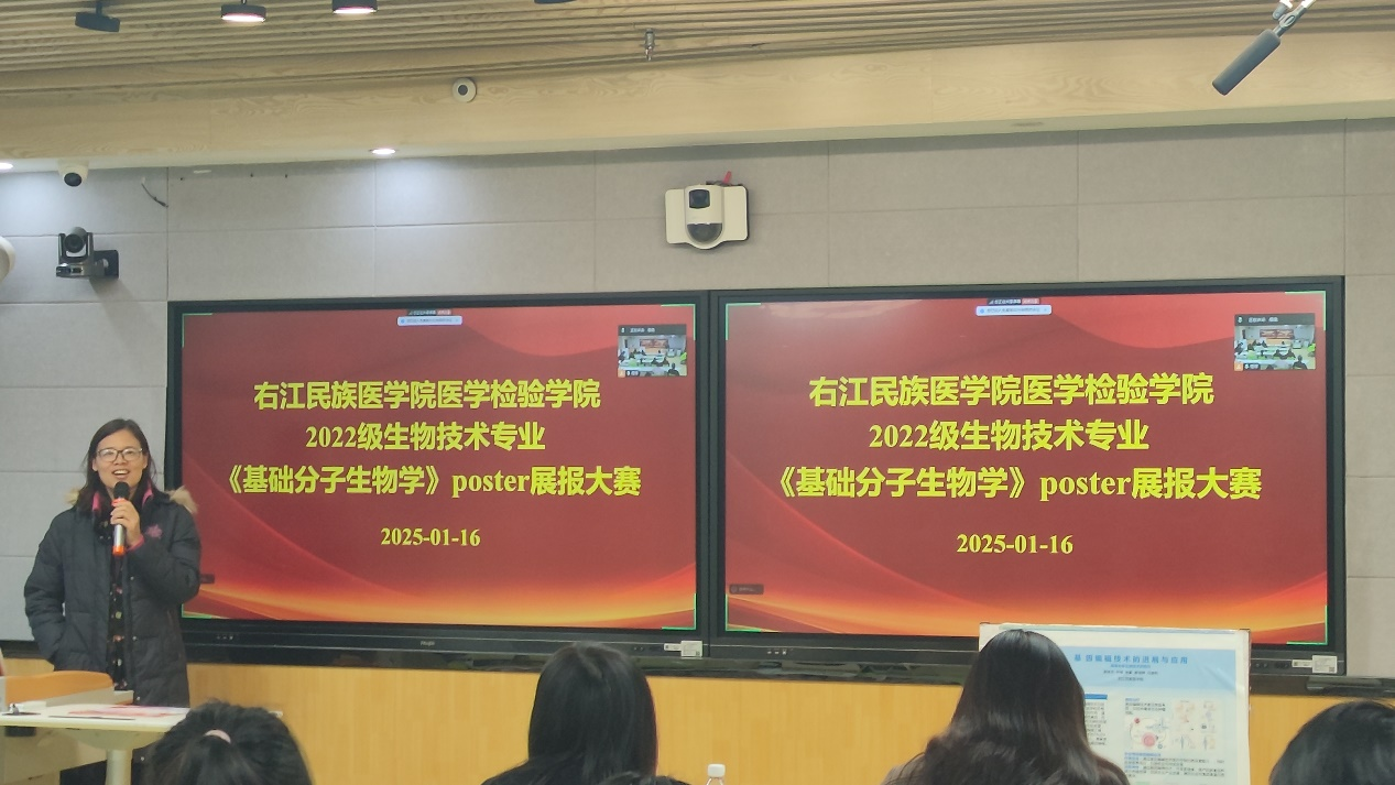 为落实立德树人根本任务,夯实以员工发展为中心教育理念,2025年1月16日下午,太阳成集团tyc122cc圆满举办了生物技术本科专业《基础分子生物学》课程Poster设计大赛。2022级生物技术本科班全体员工参加,院经理庞雅琴教授、罗艳红教授、姜成宇博士、车志群博士、雷雪博士等莅临指导并担任比赛评委。比赛共评出一等奖1个、二等奖2个、三等奖3个、优秀奖6个。
