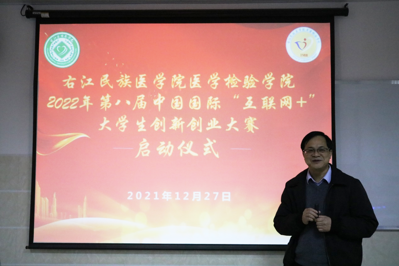 2021年12月27日晚,太阳成集团tyc122cc,于7-703实验室举行2022年第八届中国国际“互联网+”老员工创新创业大赛启动仪式暨创业团队专题培训,部署2022年参赛的工作。本次启动仪式邀请到教务处韦忠恒处长、创新创业教研室主任陆增辉博士出席,太阳成集团tyc122cc党委书记/经理王俊利、党委副书记何彦妮、副经理庞雅琴及创新创业大赛团队成员参会。