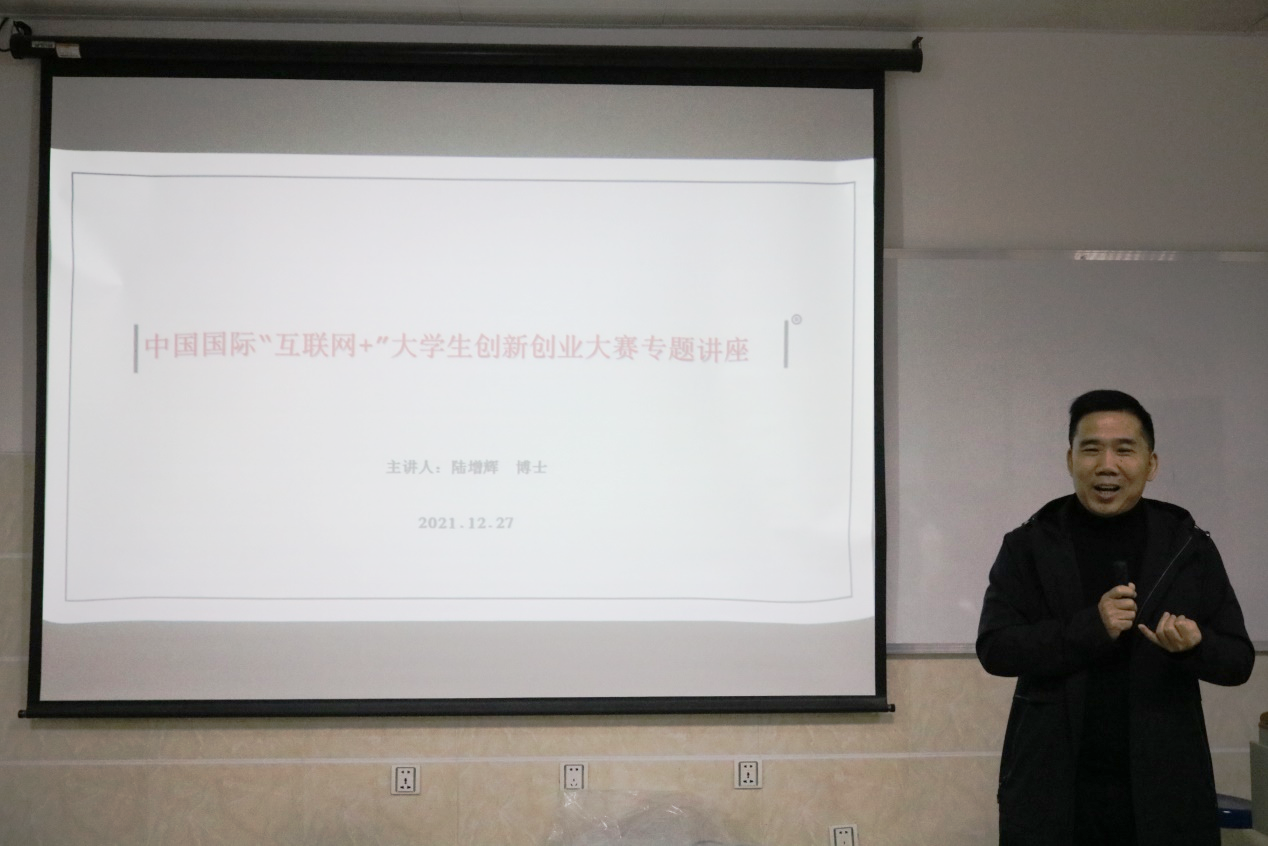创新创业教研室主任陆增辉博士进行了专题讲座,详细分析了当前高校创新创业教育发展情况。陆博士表示:推进老员工创新创业教育要以赛促学,培养创新创业生力军;以赛促教,探索素质教育新途径;以赛促创,搭建创新创业大平台。他鼓励大家在往年的优异成绩上取得新的突破。