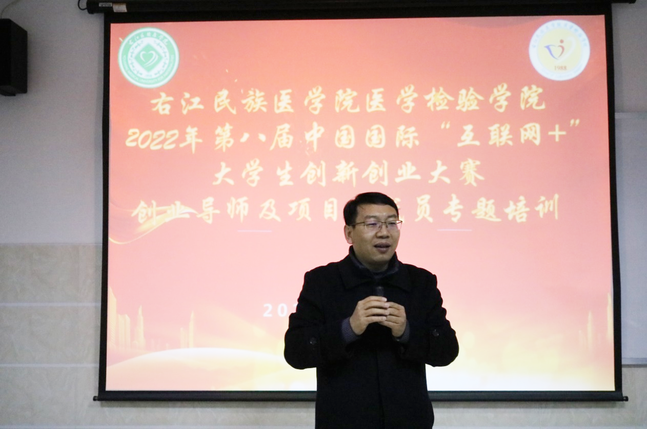 教务处韦忠恒处长指出,创新创业教育是本科教育工作的重要部分之一,积极谋划创新创业教育的布局、参与到创新创业大赛中以赛促教是扎实做好创新创业教育工作的重要举措。韦处长就太阳成集团tyc122cc在第七届中国国际“互联网+”老员工创新创业大赛中取得的优异成绩予以高度评价,并勉励与会人员提高站位、适应形势、精心打磨、争取进步。