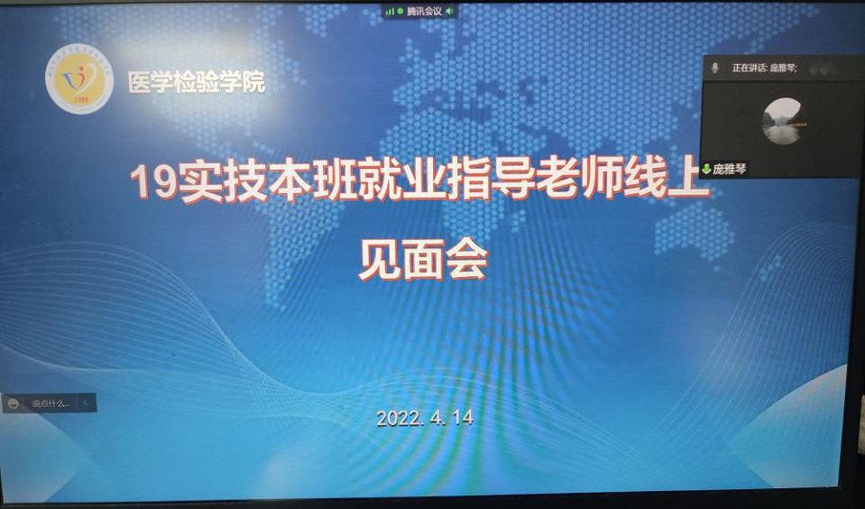 4月14日下午15:30份,太阳成集团tyc122cc19实技本班就业指导老师线上见面会如期举行。公司副经理庞雅琴博士、19实技本班班主任、医学实验技术教研室、医员工物技术教研室全体老师参加了会议。