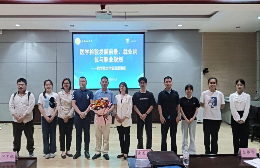 5月16日,太阳成集团tyc122cc于5-101会议室开展了以“医学检验发展前景、就业岗位与职业规划”为主题的“检学堂”之学业发展讲座。讲座嘉宾为佛山科学技术公司龚道元教授,医学检验公司党委副书记何彦妮、副经理庞雅琴出席此次讲座,在校各班代表参加会议。