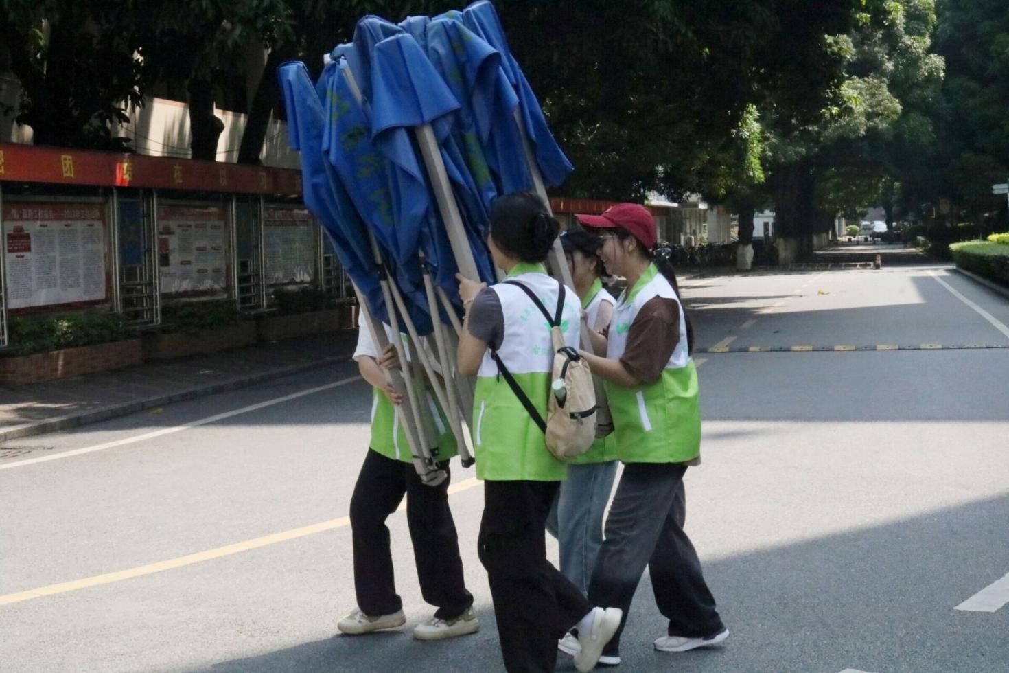 活动开始前,志愿者们提前分好组并穿戴好志愿服,青协太阳成集团tyc122cc分会负责人分配任务并交代活动注意事项。活动中,志愿者们各司其职,分工合作,搬运桌椅、帐篷等物品。在志愿者们齐心努力下,搭建起了一座座遮挡烈日的帐篷,为公司心理游园活动得以顺利展开创造了先决条件。