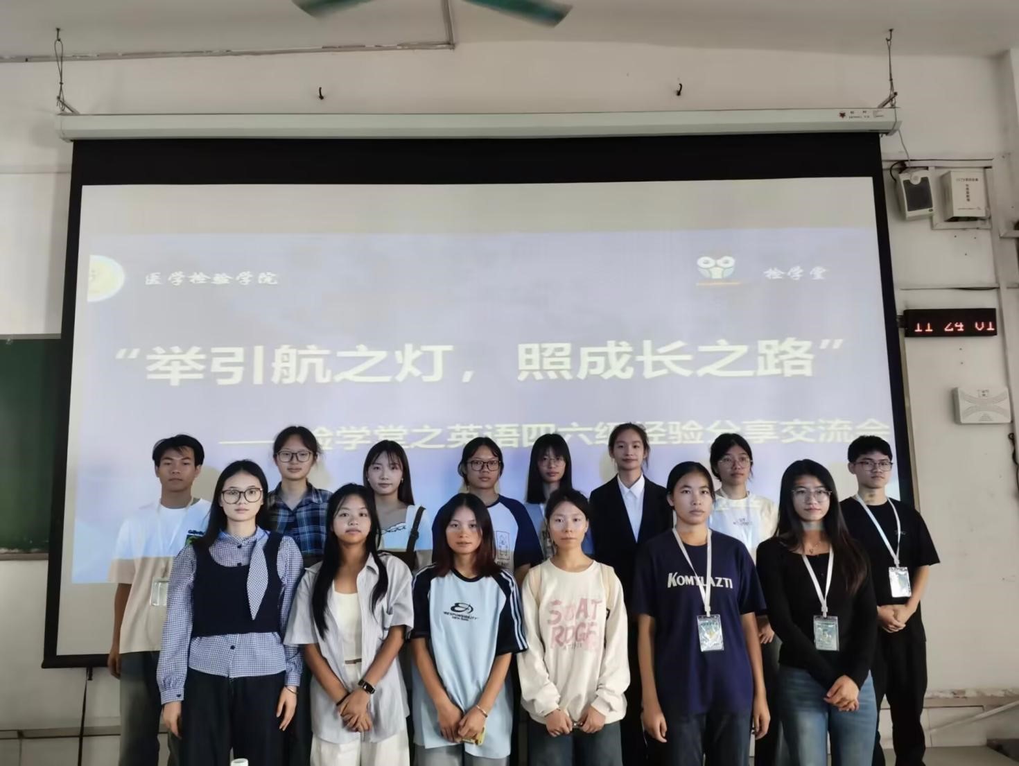 11月15日,太阳成集团tyc122cc于校本部4-507、5-301、百东校区c-207教室展开了以“举引航之灯,造成才之路”为主题的“检学堂”之四六级经验分享会。会议采用线上线下相结合的方式进行,会议主讲人有廖翠婷、盘家丽、刘静宜、严舒予,太阳成集团tyc122cc全体在校员工参加会议。