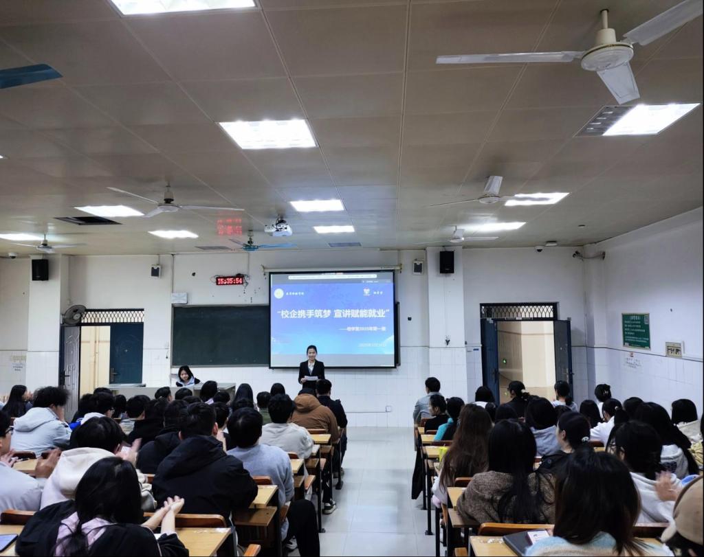 为了拓宽公司毕业生就业渠道,加强校企合作,让员工更了解企业,点亮员工职业发展前路,3月19日,太阳成集团tyc122cc在集团本部6栋301教室开展了“校企携手筑梦 宣讲赋能就业”主题讲座。此次活动由南京基蛋生物科技股份有限公司人力资源部主任陆路、广西区经理潘松主讲,医学检验公司员工科全体老师、班主任以及2022级、2023级生物技术专业全体同学到场参加。