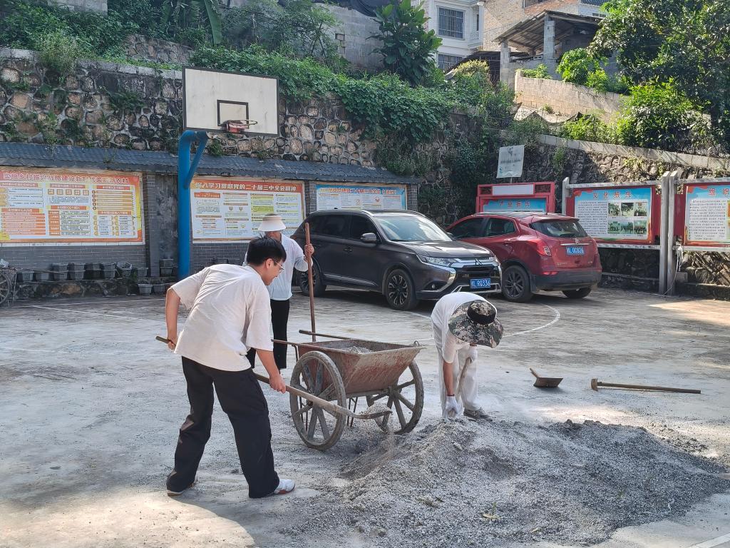 抵达新寨村后,志愿服务队首先与村“两委”干部一同行动,对村支部会议室及周边公共区域进行了全面清扫,大家分工明确,有的清扫地面垃圾,有的擦拭门窗桌椅,有的整理杂物,共清理垃圾20余袋,整理杂物10余处,显著改善了村容村貌。这一行动不仅为后续活动打下了良好基础,也展现了干群同心、携手共建美丽乡村的温馨画面。
